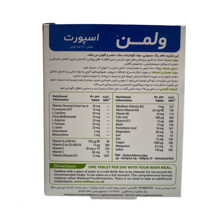 نوع ویتامین و مواد معدنی: آهن , منیزیم , ویتامین A , ویتامین B , ویتامین C , ویتامین D , ویتامینهای گروه B , فولیک اسید , کوآنزیم کیوتن , زینک , ویتامین D3