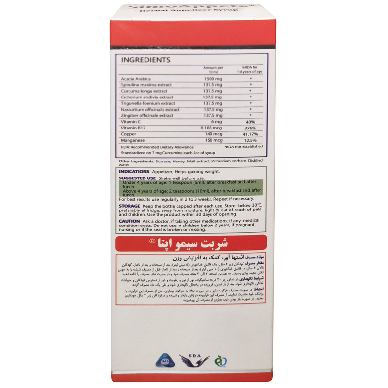 کودکان بالای 4 سال: روزانه 2 قاشق مربا خوری (10 میلی لیتر) بعد از صبحانه و ناهار میل شود.