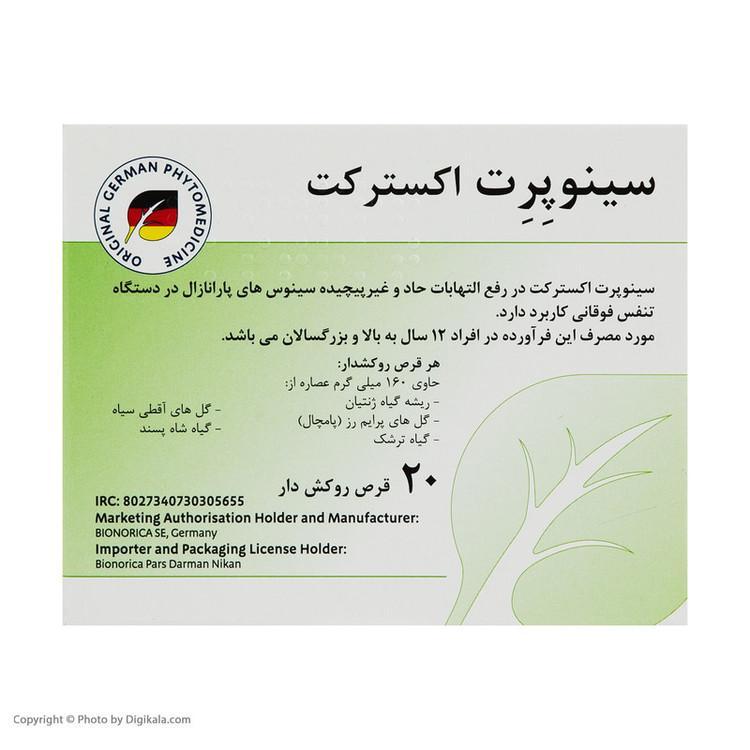 قرص سینوپرت اکسترکت بیونوریکا بسته 20 عددی