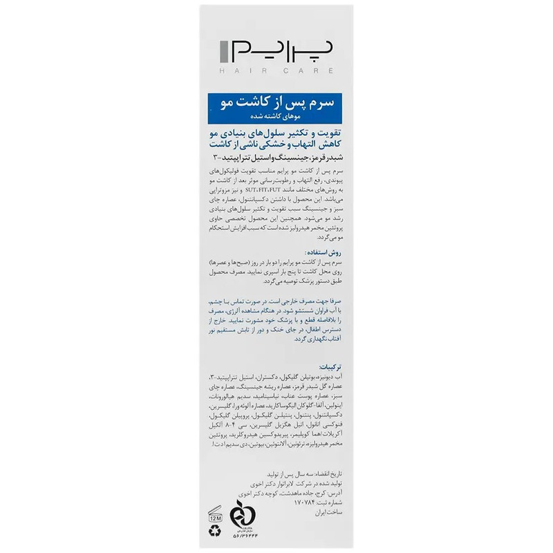سرم پس از کاشت مو پرایم مدل TS حجم 60 میلی لیتر