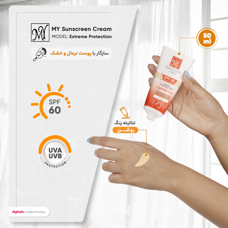 کرم ضدآفتاب رنگی مای مدل Extreme Protection، مناسب پوست‌های نرمال و خشک، حجم 50 میلی‌لیتر