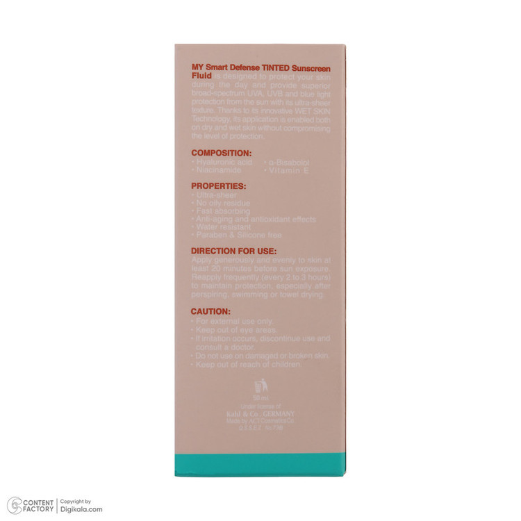 فلوئید ضد آفتاب رنگی مای SPF 50 مدل Smart Defense حاوی محافظ UVA و UVB ‌مناسب انواع پوست حجم 50 میلی‌ لیتر