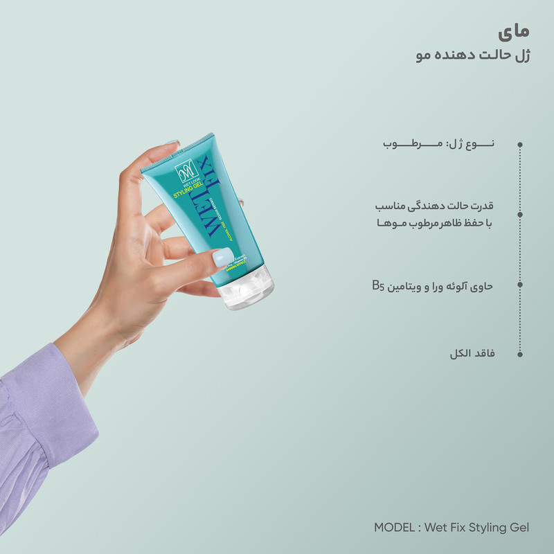 ژلها در دو نوع خیس و مرطوب در بازار موجود هستند؛ ژلهای خیس موهایی براق و درخشان با هر حالت دلخواه را نشان خواهد داد گویا موهایتان خیس است، نه تنها با استفاده از آن باعث افزایش اعتماد به نفستان خواهد شد بلکه در دید اطرافیان نیز تاثیر بسزایی ایجاد میکند. شرکت مای ژل مرطوبی را تولید کرده که برای استفاده در طول روز مناسب است و حاوی عصاره گیاه آلوئه ورا و ویتامین B5 است. مای برندی است ایرانی که تاکنون توانسته جایگاه خود را بین مشتریان پیدا کند و محصولاتی را با توجه به نیاز و سلیقهی مشتریان به بازار عرضه کند. بهترین زمان استفاده از ژلهای خیس بعد از حمام و یا هنگامیکه موهایتان نمدار و یا مرطوب است خواهد بود تا درخشانندگی موهایتان را نشان دهد،؛ این ژل قدرت نسبتاً قویای دارد که حالت موهایتان را با فرم دلخواه تثبیت میکند اگر بخواهیم ماندگاری آن را افزایش دهیم بعد از استفاده از آن، سشوار برای تثبیت ژل در سطح مو موثر واقع شده است. ویتامین B5 موجود در این محصول از خاکستری شدن موهایتان جلوگیری کرده و همچنین فاقد الکل است؛ که عوامل موجود سلامت موهایتان را تضمین میکند. ژل مو مای مدل «Wet Fix» از نوع مرطوب است که به شما در داشتن موهایی براق و درخشان کمک میکند؛ بعد از استفاده از این ژل نگرانی در رابطه با سفیدک و پوسته پوسته شدن نخواهید بود.