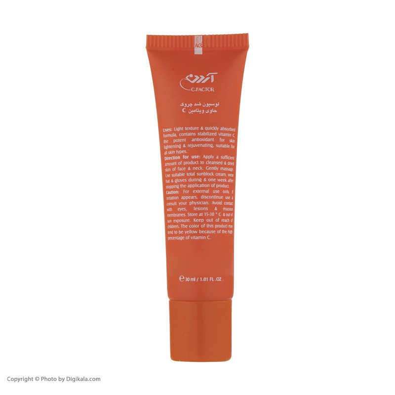 اگر شما هم دههی دوم و سوم عمرتان را گذراندهاید به احتمال زیاد خطوط ریزی را که کم کم بر روی صورتتان مشاهده کرده و به فکر برطرف کردن و پیشگیری از آن افتادهاید. لوسیون ضد چروک آردن مدل Vitamine C در مقدار 30 گرمی تولید و عرضه شدهاست. نوع محفظه نگهدارنده این محصول تیوبی بوده و جنس آن از پلاستیک است. این محصول سبک و جمعوجور بوده و بهراحتی قادر به حملونقل آن هستید. لوسیون ضد چروک آردن حاوی ویتامینهای E و C بوده و برای انواع پوست قابل استفاده است. این محصول جوانکننده و سفتکننده پوست است و چروکهای صورت و گردن را بر اثر استفاده مداوم برطرف میکند. از ویژگیهای این محصول میتوان به لایهبرداری و روشنکردن پوست اشاره کرد. لوسیون ضد چروک آردن شاداب کننده و افزایش دهنده درخشش چهره بوده و محافظت کننده پوست در برابر اشعه مضر آفتاب و رادیکالهای آزاد است. گفتنی است این محصول جلوگیری کننده از فرآیند پیری زودرس و آسیب های ناشی از آفتاب، آلاینده ها، مواد آرایشی و عوامل نامطلوب محیطی است.