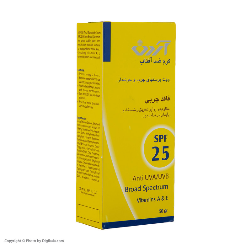 کرم ضدآفتاب آردن مدل SPF25، حجم 50 میلی‌لیتر