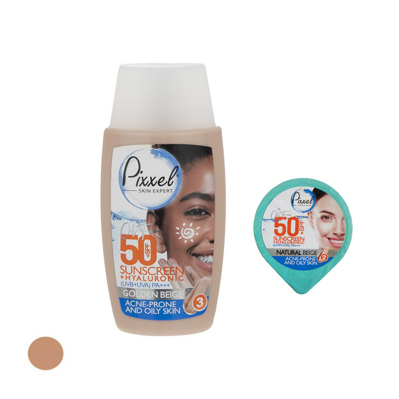 کرم ضد آفتاب رنگی پیکسل spf50 مدل 01 مناسب پوستهای چرب حجم 50 میلی لیتر به همراه کرم ضد آفتاب رنگی پیکسل spf50 مدل 02 حجم 7 میلی لیتر